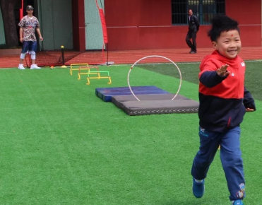 在学校的常规体育课中,除了传统体育项目训练,学校还分年段开设了足球、棒球、国际飞镖等拓展课程。今日也让参加开放日的同学们体验了一场独具特色的棒球课程,既锻炼身体,也增长见识。